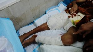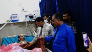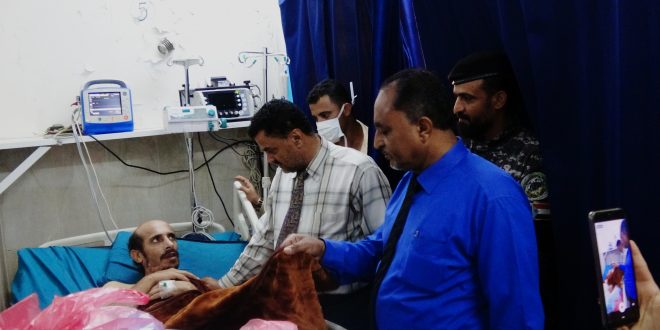 ويرقد الجريح في قسم الحزام بمستشفى الجمهورية، وقد اصيب بطلق ناري ادى لفقدان جزء من عظمة الفخذ، و تم اجراء له عدة عمليات من سابق في عدن وجمهورية مصر بواسطة جهاز اليزاروف ثم عاد الى ارض الوطن وعلية جهاز تطويل نوع اورثوفيكس.