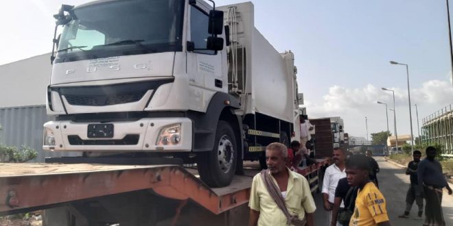 وصلت إلى العاصمة المؤقتة عدن تجهيزات ضخمة شملت على الشياول والقلابات والفرامات والحاويات والجرافات، وذلك استعداداً لإطلاق البرنامج السعودي لتنمية وإعمار اليمن حملة للنظافة والاصحاح البيئي، بالتعاون مع صندوق النظافة في عدن.