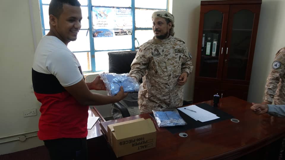 الجدير ذكره ان دائرة الإمداد والتموين العسكرية قد قامت في وقتا سابق بتوزيع الكمامات على جنود الجبهات في الضالع وشقرة وكافة المؤسسات والمشافي الحكومية ،حيث وان الكمامات الموزعة تصنع من قماش خاص معقم قابل للغسل والكي وإعاده الاستخدام مرة أخرى.