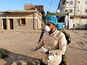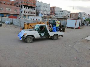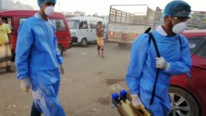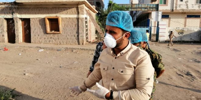 مؤكدا ان فريق الصحية واصل عملية الرش الضبابي والرذاذ في سجن المنصورة والاحياء المحيطة به وسوقي الخضار والقات .