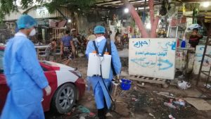 صحية الدعم والإسناد تواصل حملة الرش الضبابي والرذاذ للمعسكرات والأسواق العامة