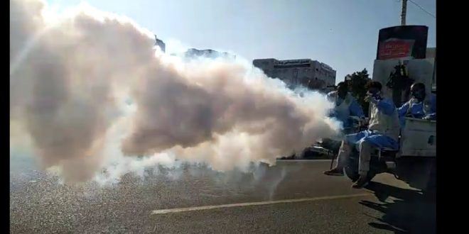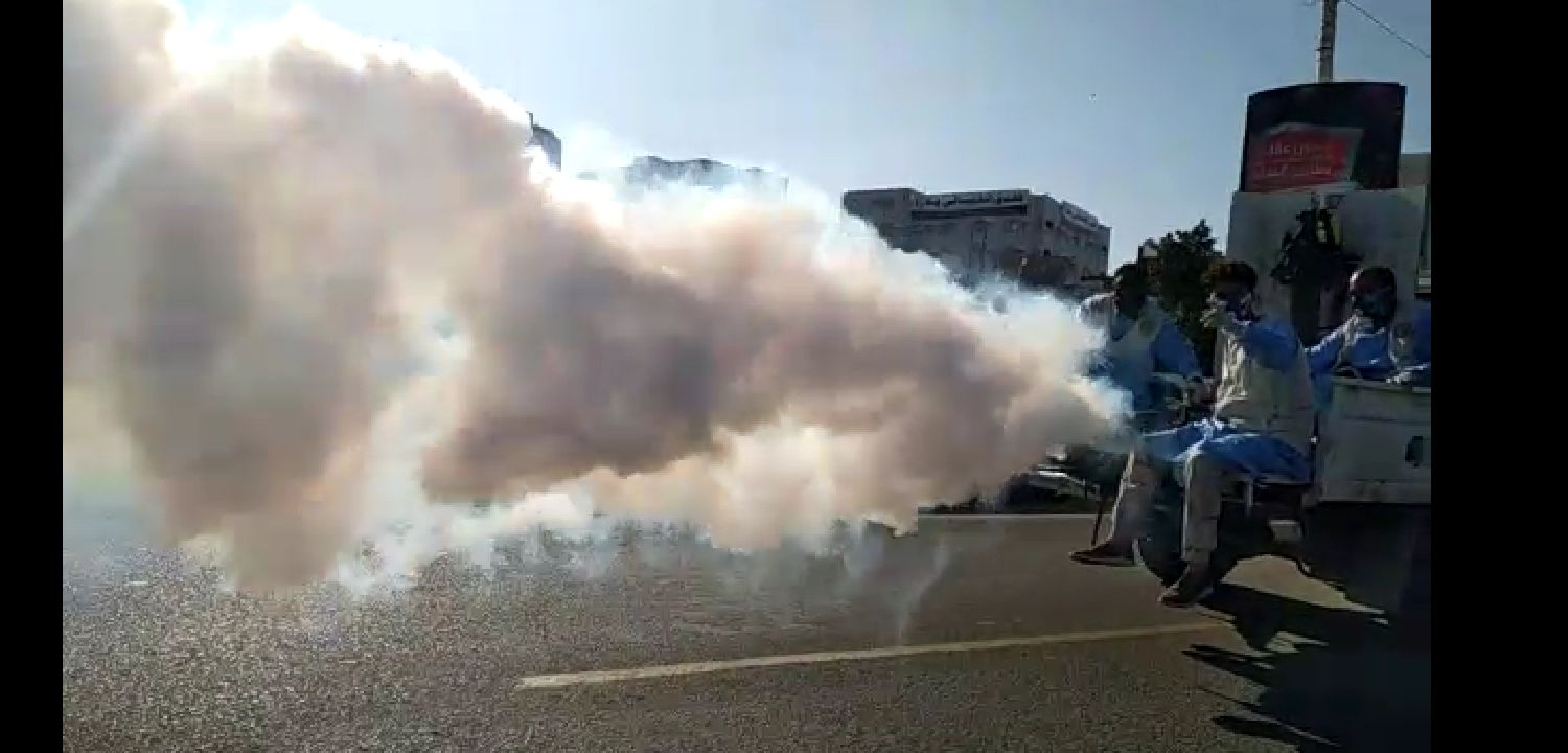 صحية الدعم والاسناد تواصل الرش الضبابي في عدن