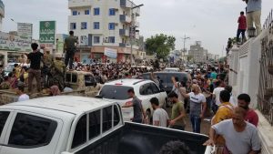 شيع الألاف من أبناء الجنوب جثمان الشهيد بإذن الله نبيل القعيطي الى مقبرة الرضوان بالممدارة بعد الصلاة عليه في جامع الرحمن بالمنصورة.