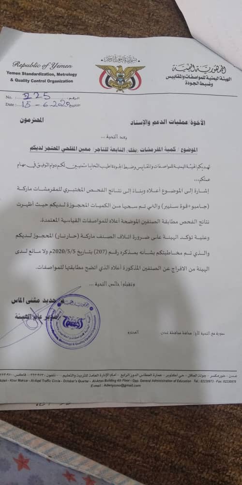 أشرفت دائرة الإمداد والتسليح العسكري بقوات الدعم والإسناد صباح اليوم على عملية إتلاف حاوية من المقرمشات (الطرزان) الحار الغير متطابق مع الجودة وضبط المقاييس ، بحضور مندوب من الهيئة العامة للمواصفات والمقاييس وبناءً على تقرير من الهيئة.