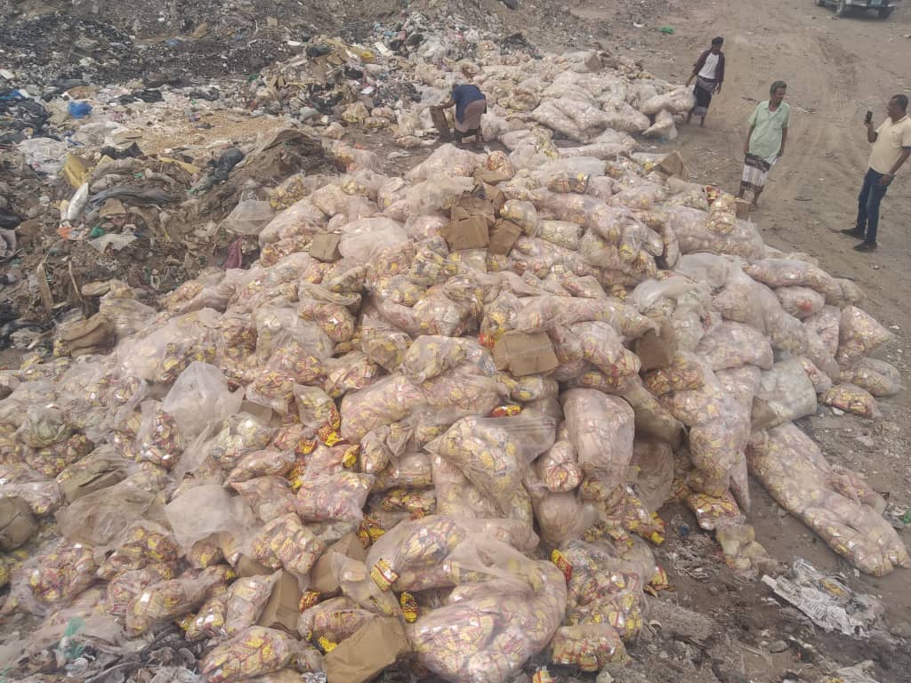 وجرت عملية الإتلاف في مقلب القمامة بمديرية البريقة بالقرب من مقر التحالف العربي .