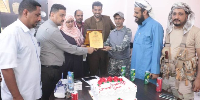 كرمت الدائرة الصحية لقوات الدعم والإسناد، اليوم الاحد، بعدن، الدكتورة سعاد عبده الميسري مديرة عام البرنامج الوطني للإمداد الدوائي بوزارة الصحة العامة والسكان.