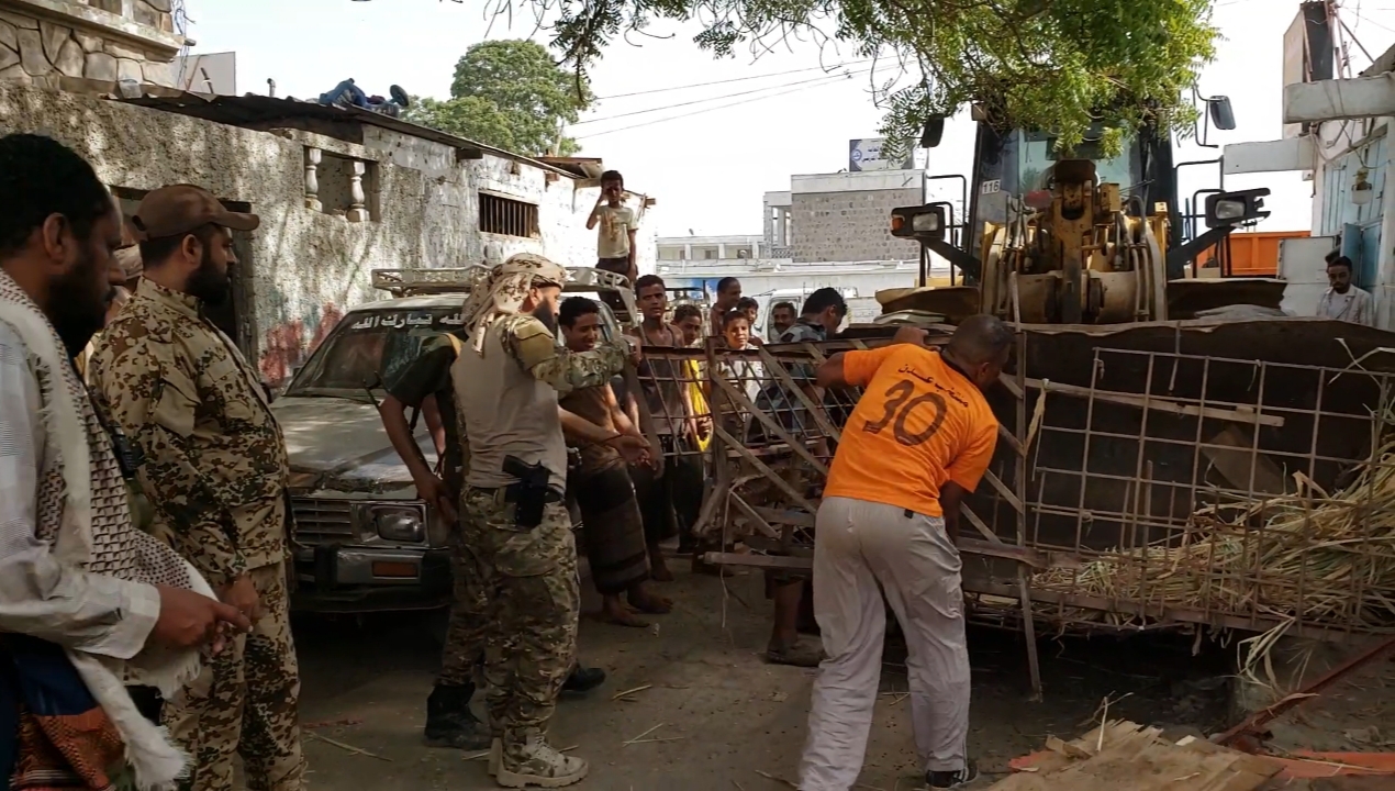 حيث أشرفت الأجهزة الامنية وقادات الشرط وكذلك الاخ محمد بانافع نائب رئيس هيئة مكافحة البسط وإزالة العشوائيات عدن وقائد شرطة المنصورة الاخ حسين صالح مسهر وقائد شرطة الدرين الاخ محمد قائد ونائب شرطة كابوتاالاخ عنان محمد المحرمي وغاب عن الحضور قائد شرطة القاهرة ونائبه، على حملة الإزالة وسط نجاحات كبيرة.