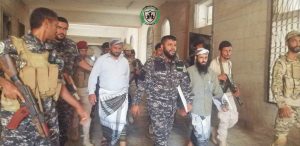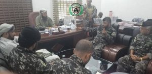 زارا قائد قوات الدعم والاسناد والأحزمة الامنية العميد محسن الوالي والعميد نبيل المشوشي اركان حرب الدعم والإسناد قائد اللواء الثالث مقر قيادة حماية المنشآت في العاصمة عدن .