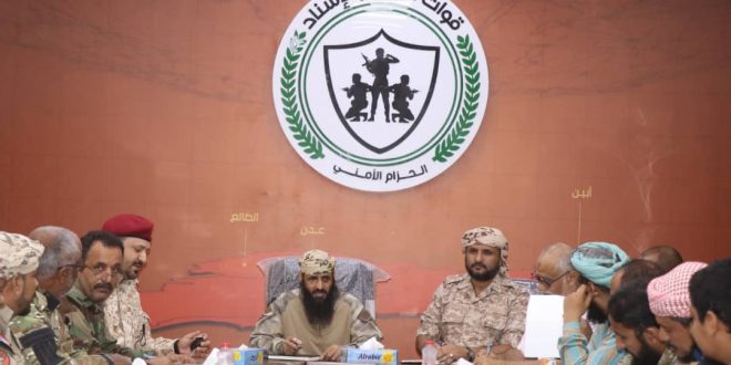 ترأس قائد قوات الدعم والإسناد والأحزمة الأمنية العميد محسن الوالي صباح اليوم في مقر قيادة القوات اجتماعا لمناقشة الترتيبات لتأمين استقبال وتأمين الحكومة المزمع وصولها خلال الأيام القادمة.