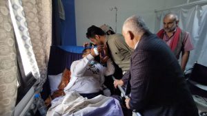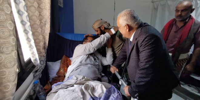زارا وزير الخدمة المدنية الدكتور عبدالناصر الوالي وقائد الدعم والإسناد والأحزمة الأمنية العميد محسن الوالي، ظهر اليوم السبت وكيل وزارة الداخلية اللواء محمد مساعد الأمير والقائد صلاح سريب وعدد من الجرحى في مستشفى البريهي للأطمئنان على حالتهم الصحية جراء إصابتهم في حادث المطار الإرهابي.