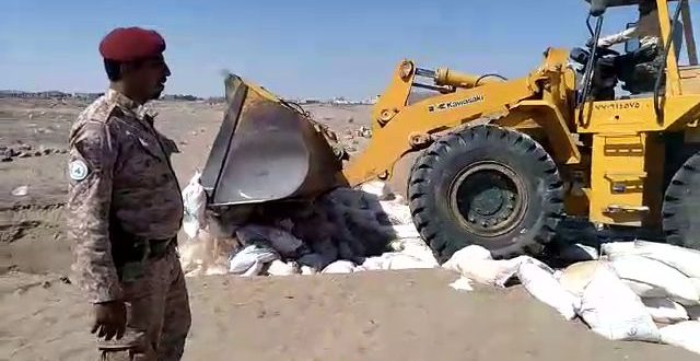 وجرت عملية إتلاف 400كيس من كربونات الامونيوم بحضور مندوبين من الهيئة العامة للمواصفات والمقاييس وضبط الجودة بعدن وكذلك مندوبين من اللجنة الأمنية للدعم والإسناد .