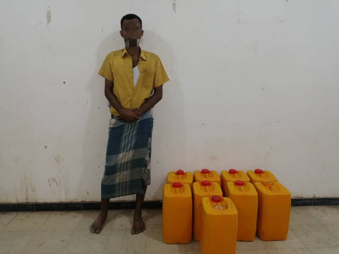 ضبطت قوات الحزام الأمني، يوم أمس، شخصاً يبيع للمواطنين في حي السيلة بالشيخ عثمان عبوات زيت طبخ مغشوش.