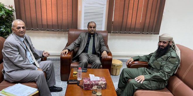 التقى وزير المالية في حكومة المناصفة سالم بن بريك صباح اليوم الخميس بقائد قوات الدعم والإسناد العميد محسن الوالي بمبنى الوزراة بالعاصمة عدن.