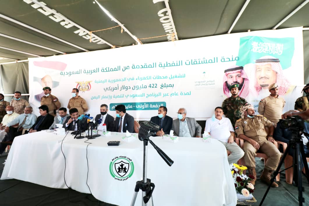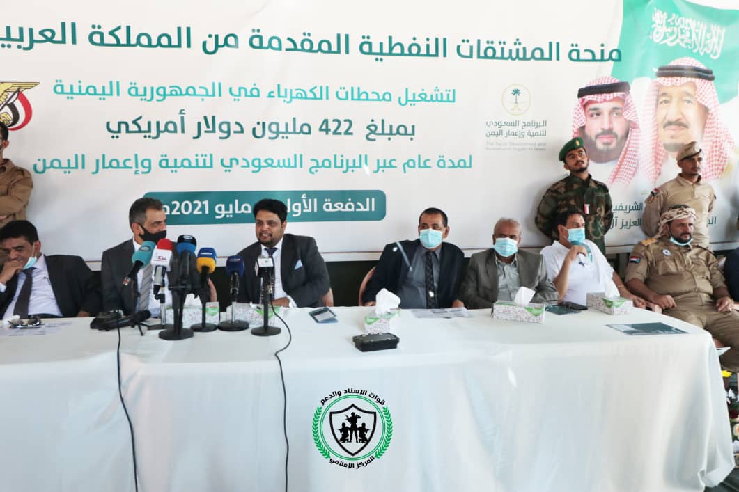 استقبل وزير الكهرباء والطاقة انور كليشيات ومحافظ العاصمة عدن احمد لملس ، وأركان قوات الدعم والإسناد العميد نبيل المشوشي، والعميد مطهر الشعيبي مدير أمن العاصمة عدن بمعية عدد من المسؤولين الدفعة الأولى من منحة المشتقات النفطية المقدمة من المملكة العربية السعودية لتشغيل محطات الكهرباء بعدد من المحافظات والبالغ تكلفتها 422 مليون دولار امريكي لمدة عام عبر البرنامج السعودية للتنمية .