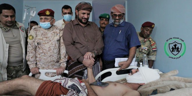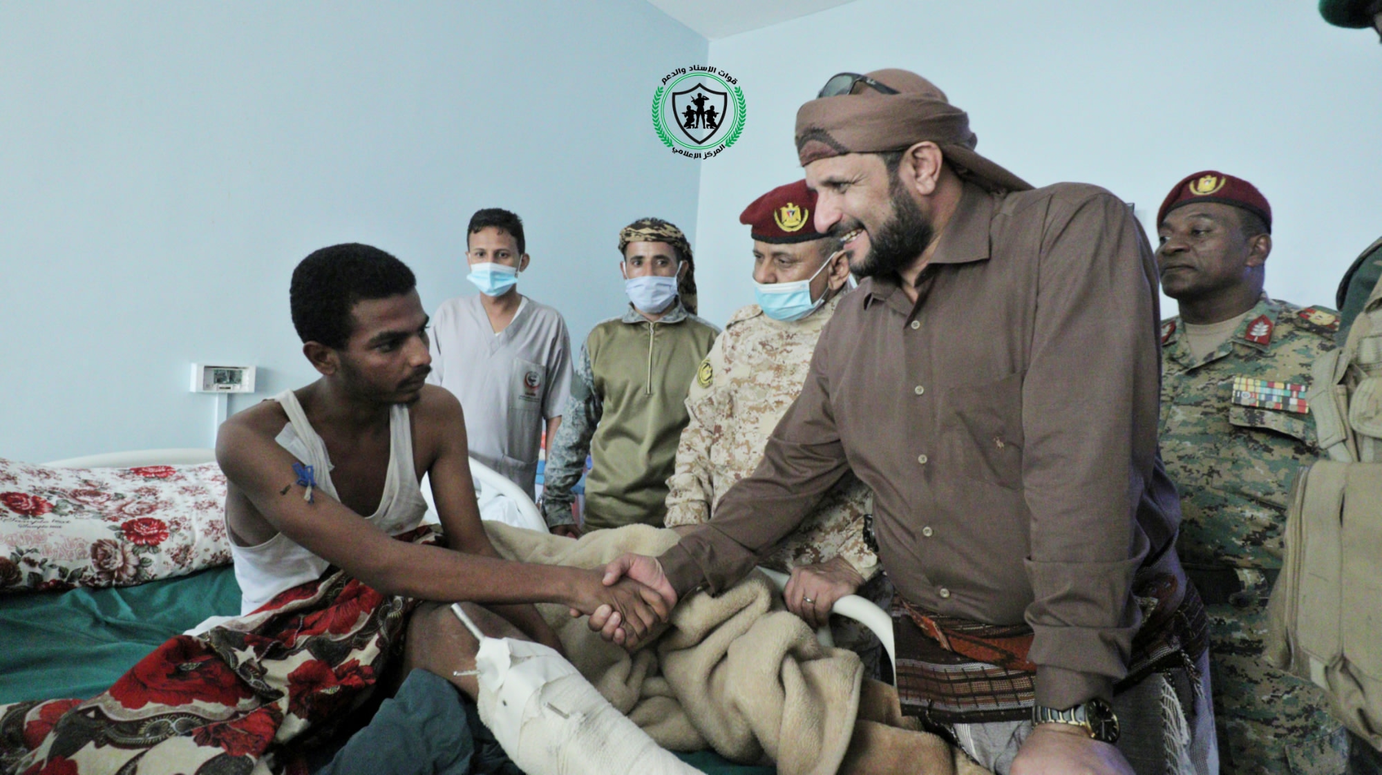عسكر والمشوشي يقومان بزيارة عيدية لجرحى القوات الجنوبية في مشافي عدن
