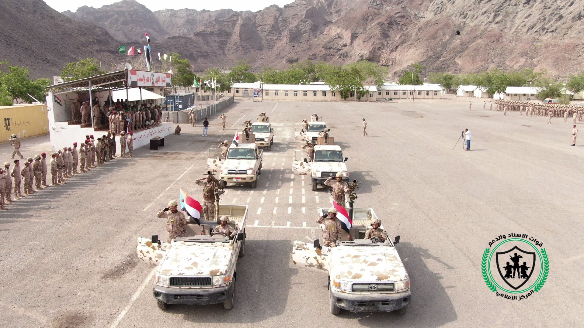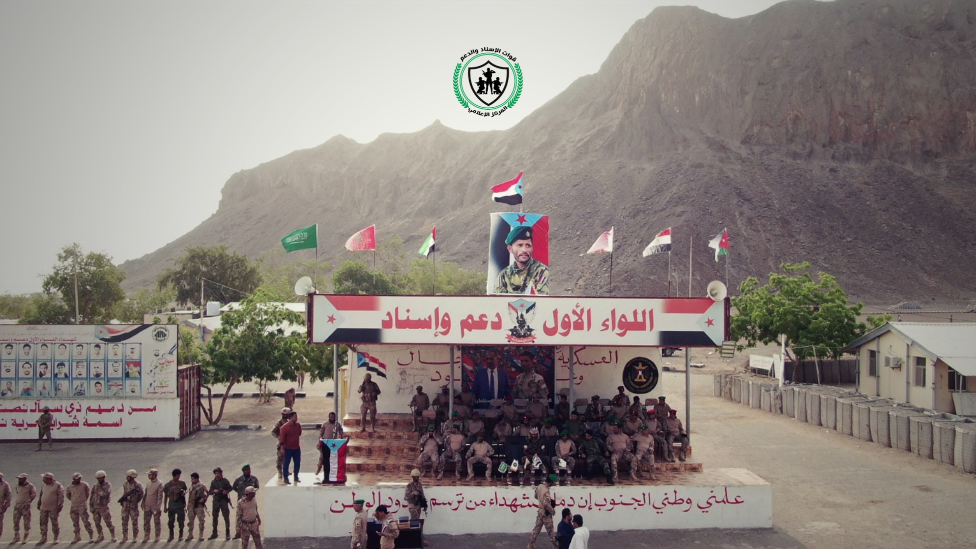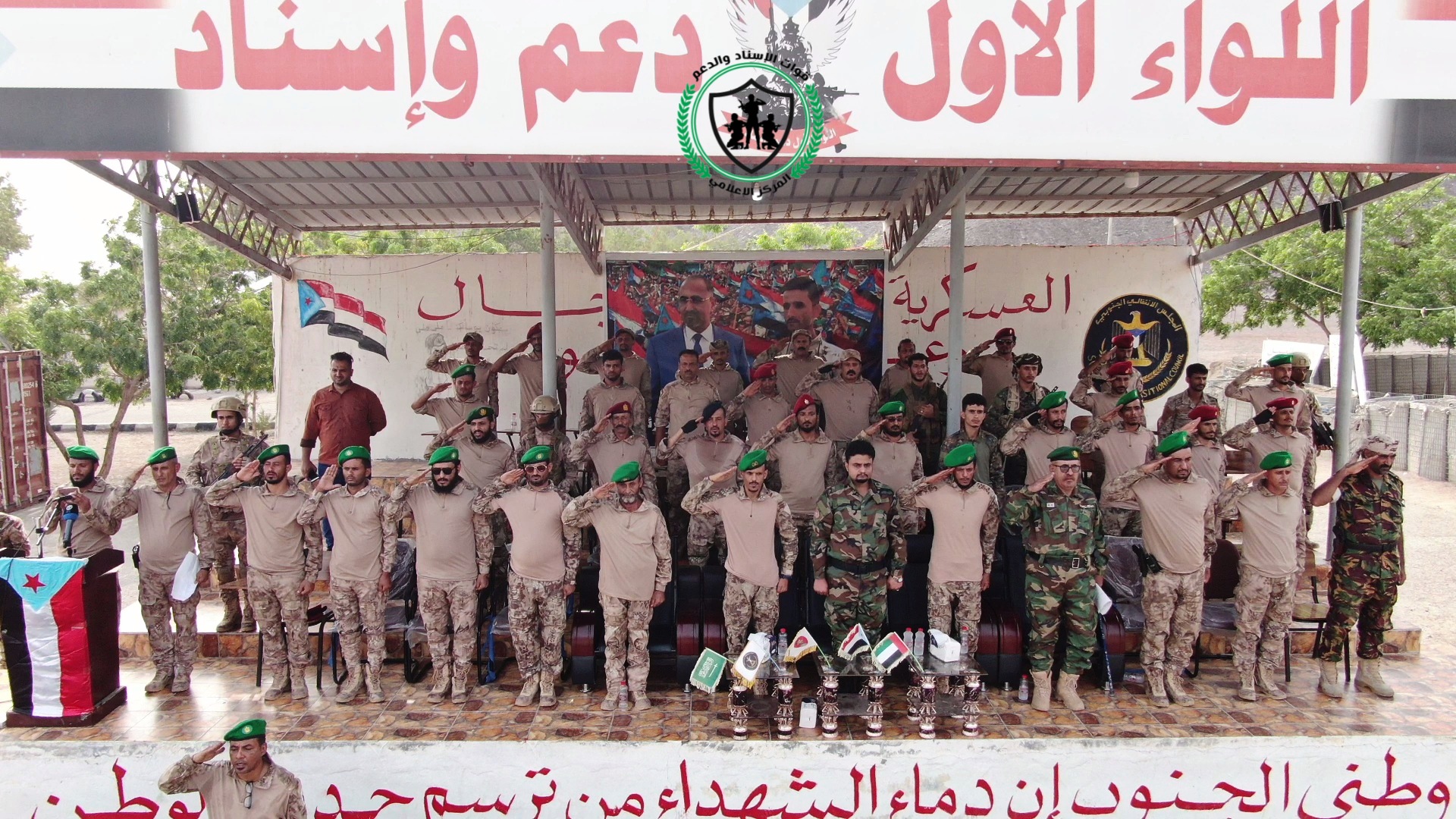 دشن اللواء الأول دعم واسناد صباح اليوم السبت المرحلة التدريبة الثانية للعام 2021م باقامة عرض عسكري لبعض من وحدات اللواء في مقره بمعسكر الجلاء باالعاصمة عدن.