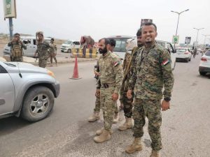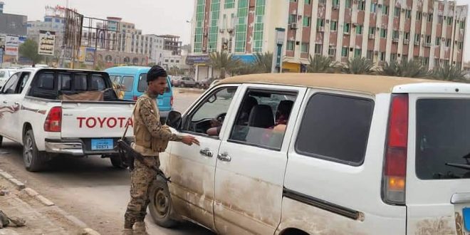 طوق عدن التابع للدعم والإسناد المتواجد على المنافذ الرئيسية لعدن يقوم هو الاخر بمنع دخول أي سلاح الى داخل المدينة وإيقاف المركبات الغير مرقمة وفقا للتعليمات الصادرة من قيادة الحملة .