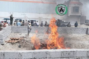 اتلفت قوات الدعم والإسناد والنيابة الجزائية كمية من الحشيش المخدر تقدر بـ”193″ كيلو غرام في محيط النيابة في خور مكسر وبأشراف من القاضي ادهم العولقي رئيس النيابة الجزائية والعميد محسن الوالي القائد العام للقوات بمناسبة اليوم العالمي لمكافحة المخدرات والذي يصادف 26 يونيو من كل عام .