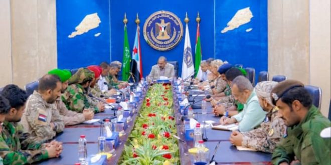 الرئيس القائد عيدروس الزُبيدي يرأس اجتماعًا للجنة العسكرية والأمنية وقيادتي ألوية الإسناد والدعم والحزام الأمني