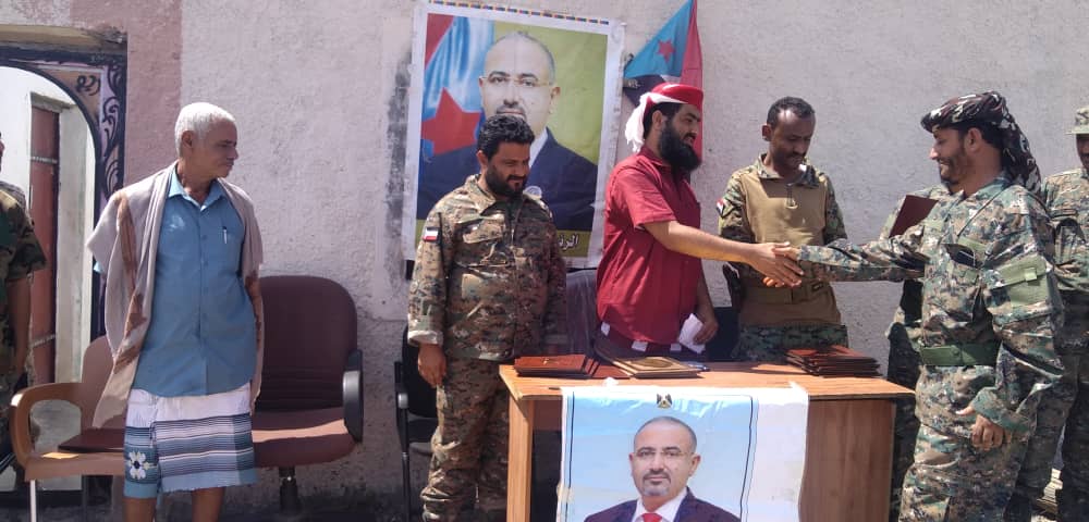 كرمت قيادة قوات الحزام الأمني بمديرية المسيمير التابعة لمحافظة لحج اليوم الخميس عدد من الضباط والجنود المبرزين تقديرا لدورهم البطولي التي بذلت منذ تأسيس قوات لحزام الامني في المديرية.