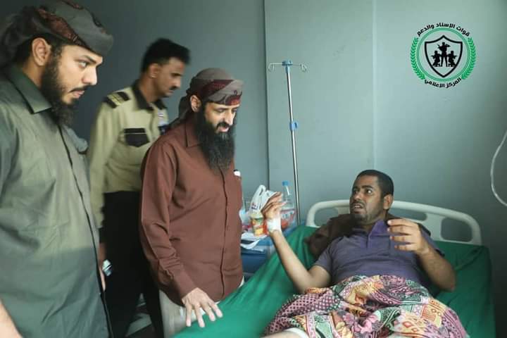 تفقد العميد محسن الوالي قائد قوات الأحزمة الأمنية يرافقه العقيد اكرم ابو البراء قائد اللواء الاول “أ”عمالقة عصر اليوم احوال جرحى حادثة قاعدة العند الجوية من منتسبي اللواء الثالث عمالقة الذين يتلقون العلاج في عدد من مشافي العاصمة عدن بعد عملية الاستهداف الحوثية الجبانة .