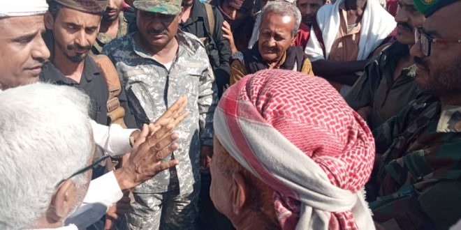 قائد الحزام الأمني دلتا أبين، صباح اليوم، بعدد من أبناء قبائل المناصرة وساكني من منطقة الرواء في دلتا محافظة أبين.