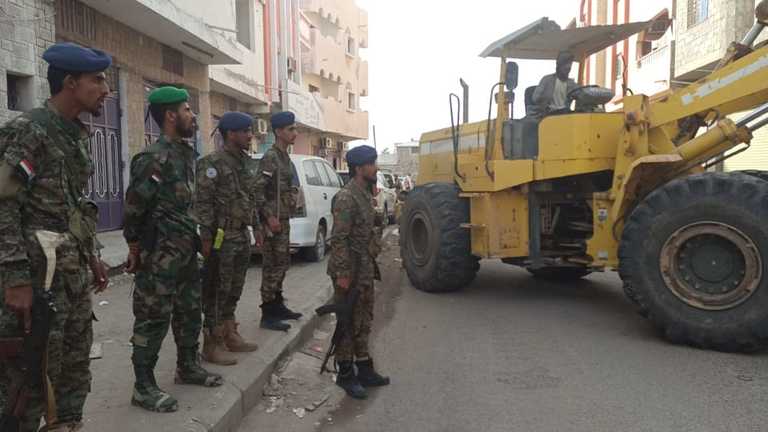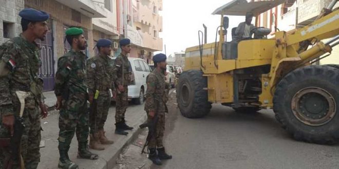 الأجهزة الأمنية تواصل حماية فرق إزالة العشوائيات بمديريات عدن