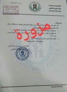 قيادة الحزام الأمني تنفي صحة الوثائق المنسوبة إليها