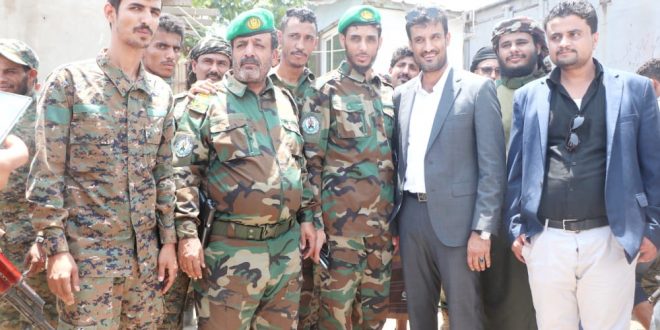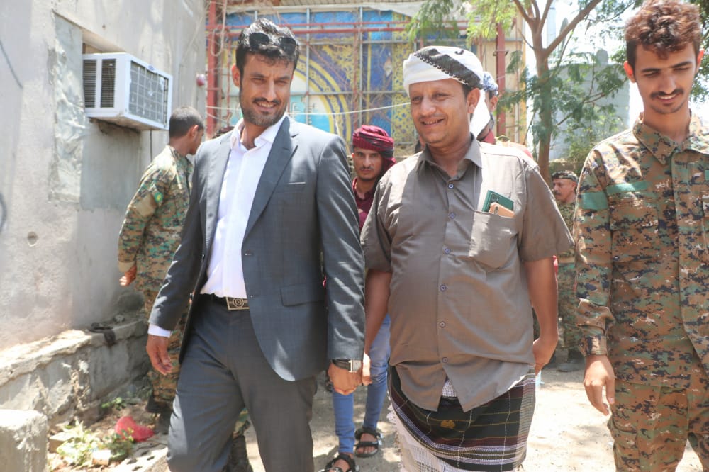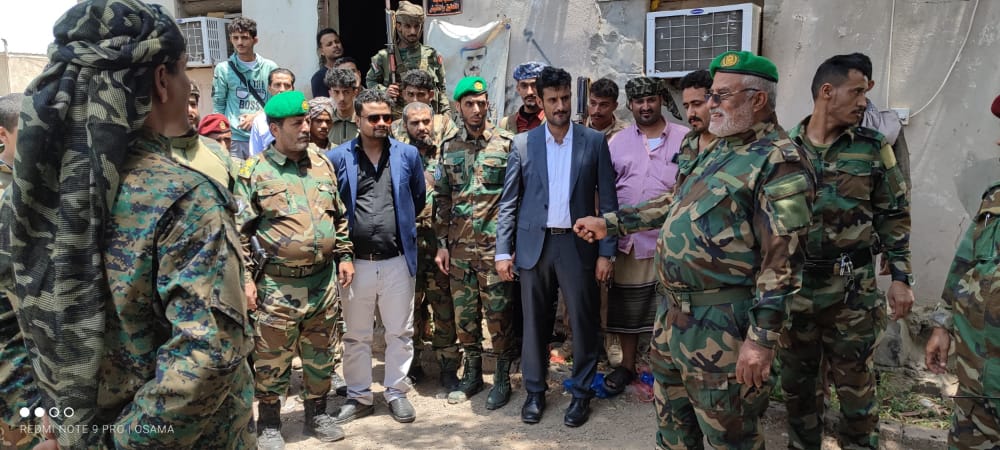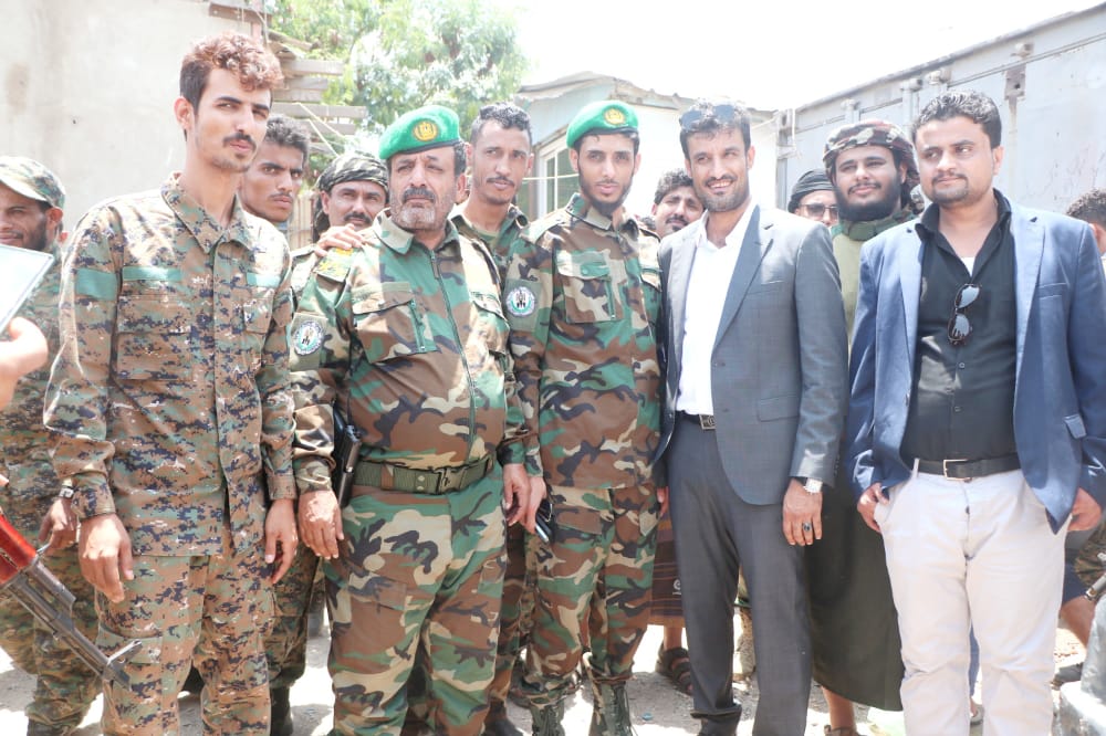 رافقه في الزيارة، العميد احمد صالح الوالي مدير مكتب القائد العام لقوات الحزام الأمني، والعميد حيدرة المحرمي مدير ادارة التدريب والتأهيل لقوات الحزام الأمني، والمهندس محمد الحبهي مدير ادارة المشاريع والهندسة لقوات الحزام الأمني والعميد نقيب اليهري,مستشار القائد العام لقوات الحزام الأمني، مدير سجن المنصورة المركزي، والعميد ناجي اليهري قائد حزام طوق عدن، والعميد ياسين تختر مدير الأشغال العسكرية وعدد من نواب مدراء الادارات وضباط الحزام الأمني.