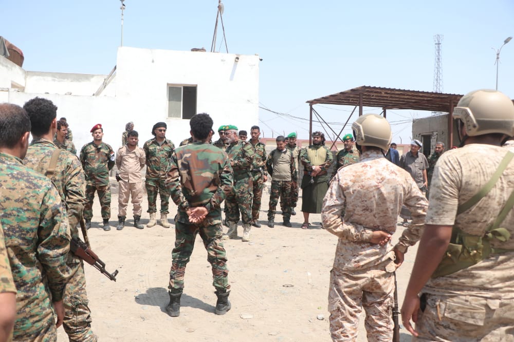 قيادة الحزام الأمني تقدم لافرادها المرابطين في المنافذ الرئيسية للعاصمة عدن التهاني بمناسبة العيد