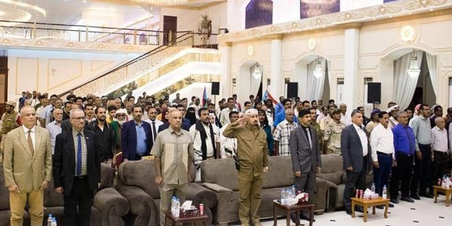 وفي الفعالية التي استهلت بآيات من الذكر الحكيم، أعقبها النشيد الوطني الجنوبي، والوقوف دقيقة حداد لقراءة الفاتحة على أرواح الشهداء، بحضور كل من أعضاء هيئة رئاسة المجلس الانتقالي الجنوبي، الأستاذ لطفي شطارة، نائب رئيس الجمعية الوطنية للمجلس الانتقالي، والعميد طيار ناصر السعدي، والدكتور محمد الزعوري، وزير الشؤون الاجتماعية والعمل، والعميد محسن الوالي القائد العام للأحزمة الأمنية، والعميد مختار النوبي، قائد محوري أبين وكرش قائد اللواء الخامس دعم وإسناد، وذوي الشهيد وعدد من رؤساء الهيئات التنفيذية للمجلس في المحافظات الجنوبية وقيادات أمنية وعسكرية وشخصيات اجتماعيه، ألقى الأستاذ فضل محمد الجعدي، عضو هيئة رئاسة المجلس الانتقالي الجنوبي، نائب الأمين العام للأمانة العامة لهيئة رئاسة المجلس، كلمة نقل في مستهلها تحايا الرئيس القائد عيدروس الزُبيدي، رئيس المجلس الانتقالي القائد الأعلى للقوات المسلحة الجنوبية.