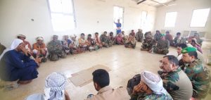إلى ذلك ألقى فريق الإرشاد الديني بالتوجيه المعنوي محاضرات توعوية وإرشادية على رجال الحزام الأمني المرابطين، وحثهم على الثبات والصبر امتثالاً للواجب الديني والوطني والإنساني، واستغلال عملية السلام في نشر قيم، التسامح والتصالح الجنوبي .