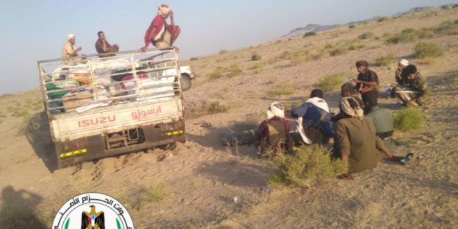 وقال قائد حزام الساحل المقدم مهدي حنتوش: “وفقا لبلاغ أمني عن سرقة دينا بالخط الدولي الساحلي , تمكنا في خلال ساعات من رصد (الدينا) ومتابعة الجناة ومطاردتهم والقبض عليهم لينالو الجزاء بموجب القانون”.