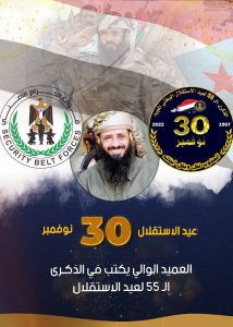 يحل علينا عيد الاستقلال المجيد في ذكراه الـ55 الذي حقق فيه شعبنا الجنوبي انتصاراً كبيراً،تمثل في خروج آخر جندي بريطاني من عدن في ال30نوفمبر عام 67م لينهي بذلك احتلال الامبراطورية التي لا تغيب عنها الشمس، لنستلهم منه الدروس والعبر في التضحية والفداء التي سطرها ابائنا منذ انطلاق الشرارة الأولى لثورة 14اكتوبر63م من جبال ردفان الشماء وسطروا أروع الملاحم البطولية ضد الغازي المحتل.