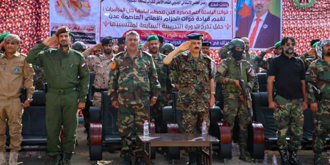 قوات الحزام الأمني عدن تقيم عرضاً عسكرياً مهيباً بتخرج الدفعة السابعة من منتسبيها