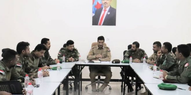 العميد الربيعي يترأس اجتماعا دوريا لقيادة قوات الحزام الأمني عدن