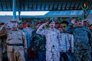 كما حث ضباط وافراد اللواء الأول على استغلال فترة التدريب للإعداد الجيد، لبناء جندي متسلح بالعلوم ومجهز نفسياً وفنياً لما من شأنه مواجهة أي طارئ ووفقاً ما تتطلبه المرحلة.
