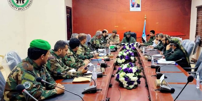 ترأس العميد محسن عبدالله الوالي القائد العام لقوات الحزام الأمني اليوم اجتماعاً بمدراء الادارات العامة بالقوات لمناقشة جملة من القضايا ذات الاهمية.