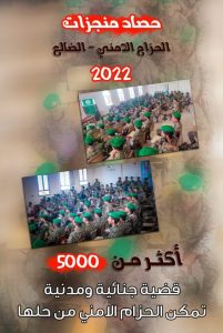 وفي تقرير أصدرته قيادة حزام الضالع بين حجم الإنجاز الكبير الذي تحققت خلال العام 2022 رغم الصعوبات التي واجهت عمل قوات الحزام ، مؤكداً أن هذا الإنجاز ما كان ليكون لولا تكاتف ابطال الحزام في كل المحاور خاصة قادة القطاعات الذين كانوا متواجدين على مدار الساعة في الميدان لمعالجة قضايا المواطنين وحماية الأمن والاستقرار .
