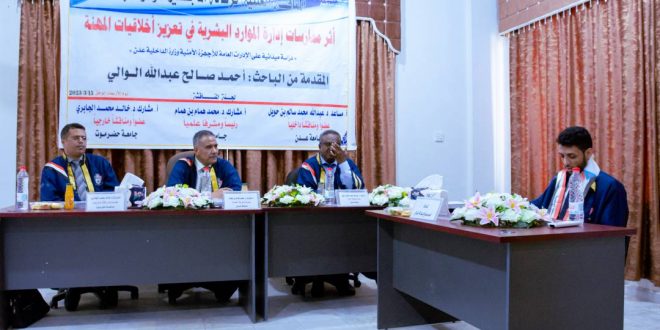 نال الباحث أحمد صالح الوالي اليوم الاربعاء شهادة الماجستير بتقدير امتياز على رسالته الموسومة بـ” أثر ممارسة إدارة الموارد البشرية في تعزيز اخلاقيات المهنة” دراسة ميدانية على الادرات العامة للأجهزة الأمنية ووزارة الداخلية عدن, والتي جرى مناقشتها بقاعة كلية العلوم الاجتماعية والتطبيقية جامعة عدن.