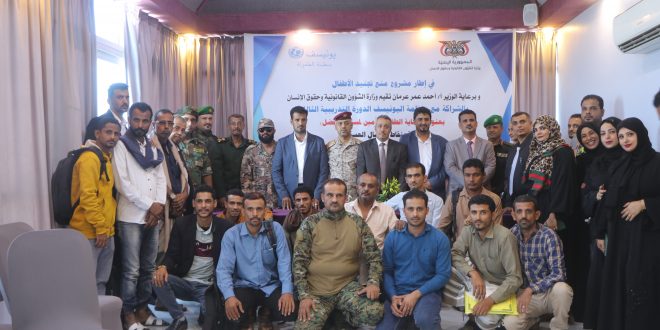 اختتمت اليوم، في العاصمة عدن، الدورة التدريبية الثالثة التي اقامتها وزارة الشؤون القانونية وحقوق الإنسان، بالشراكة مع منظمة اليونيسيف، تحت عنوان (حماية الطفولة تأمين لمستقبل أفضل) والتي اقيمت على مدى يومي 14_15من مارس، ومشاركة الحزام الأمني ومندوبي الوحدات العسكرية في وزراتي الدفاع والداخلية والعمالقة الجنوبية والقوات المشتركة في الساحل الغربي.
