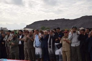 وأدت الجموع الصلاة على جثمان الفقيد الكبير، بعد الانتهاء من مراسم التشييع العسكرية بالعاصمة عدن، التي شهدها أيضا عدد من أعضاء هيئة رئاسة المجلس، والوزراء في حكومة المناصفة، والقادة العسكريين والأمنيين، تقدمهم الفريق محسن الداعري وزير الدفاع، واللواء علي البيشي قائد القوات البرية الجنوبية والعميد محسن الوالي قائد قوات الحزام الأمني، قبيل الانطلاق في موكب جنائزي مهيب إلى جامع الفردوس بمديرية المنصورة للصلاة على جثمانه الطاهر مع جموع المصلين من المواطنين عقب صلاة الجمعة، وتشييعه إلى مثواه الأخير في مقبرة ابو حربه حيث ووري الثرى.