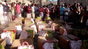 تواصل هيئة الهلال الأحمر الإماراتي توزيع السلل الغذائية في محافظة أبين، حيث وزعت الهيئة اليوم 1000 سلة غذائية لمنتسبي جمعية الصيادين في منطقة الكود.