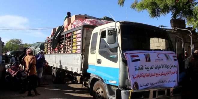 الهلال الاحمر الإماراتي يواصل توزيع السلل الغذائية في محافظة أبين