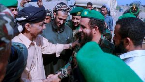 واطمأن الوفد على صحة اللواء الصبيحي، ناقلاً له تهاني كافة منتسبي قوات الأحزمة الأمنية بمحافظات الجنوب وذلك بعودته سالماً معافى إلى أرض الجنوب بعد 8 سنوات من الأسر، في سجون مليشيا الحوثي الإرهابية.