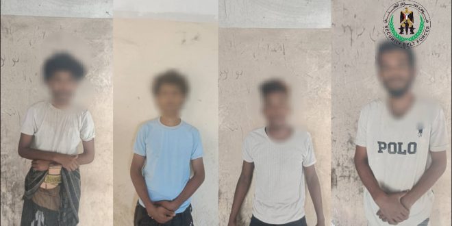 قوات الحزام الأمني تلقي القبض على عصابة ترويج مادة الحشيش المخدر بأبين