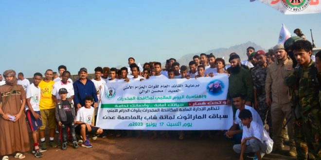 نظمت إدارتا مكافحة المخدرات والتدريب البدني والرياضي، بقوات الحزام الأمني،عصر اليوم “ماراثون” سباق رياضي، في العاصمة عدن بمشاركة 100 متسابق،يمثلون عدد من اندية العاصمة عدن،ومنتسبي الحزام، وذلك بدعم من القائد العام للحزام الأمني العميد محسن عبدالله الوالي.