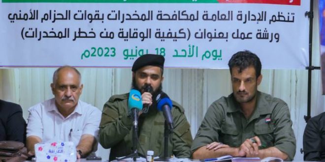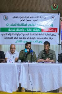 برعاية العميد محسن الوالي القائد العام لقوات الحزام الأمني نظمت الإدارة العامة لمكافحة المخدرات بقوات الحزام الأمني ورشة عمل بعنوان كيفية الوقاية من خطر المخدرات وتحت شعار “حياتك أمانة وإدمانك ندامة”، وذلك ضمن فعاليات الاحتفاء باليوم العالمي لمكافحة المخدرات الذي يصادف 26 يونيو من كل عام، بمشاركة عدد من ذوي الاختصاص والسلطة القضائية، والمجتمع المدني، والسلطة المحلية، وأكاديميين.