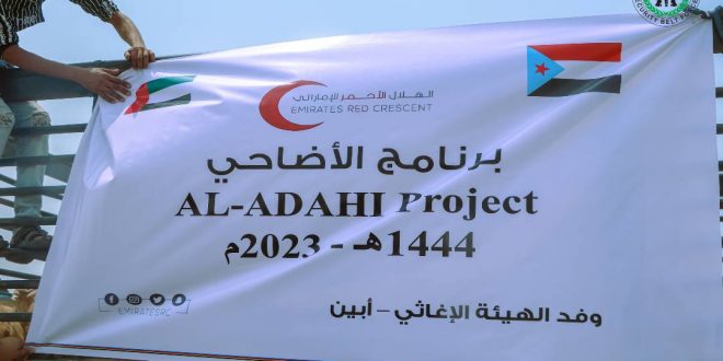 هيئة الهلال الأحمر الإماراتي تدشن توزيع أضاحي العيد لأسر شهداء وجرحى محافظة أبين