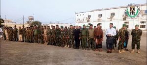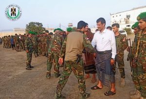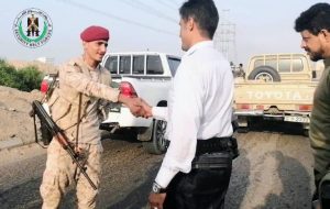 رافق الربيعي في زيارته, أركان قوات حزام العاصمة عدن, العقيد عمار السرحي وعدد من ضباط الحزام الامني.